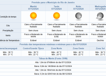 Noticias 7 de dezembro de 2024 Sábado (07/12) de calor e sem previsão de chuva na cidade do Rio de Janeiro | Máxima prevista de 42ºC
