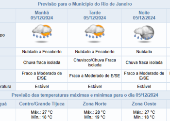 Noticias 5 de dezembro de 2024 Cidade do Rio segue com previsão de chuva fraca temperatura máxima de 28°C, nesta quinta-feira (05/12)
