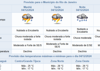 Noticias 4 de dezembro de 2024 Cidade do Rio tem previsão de chuva moderada em pontos isolados e máxima de 28°C, nesta quarta (04/12)