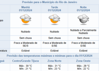 Noticias 1 de dezembro de 2024 Domingo (01/12) tem previsão de céu nublado, mas sem chuva, na cidade do Rio | Veja os próximos dias