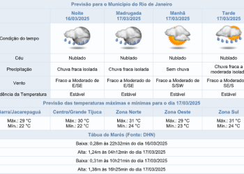 Noticias 16 de março de 2025 Domingo (16/03) na cidade do Rio de Janeiro com possibilidade de chuva; máxima de 30ºC