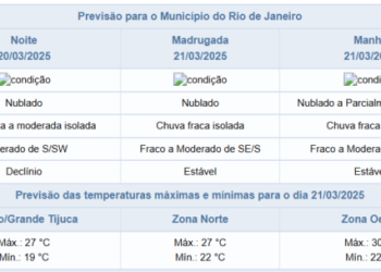 Noticias 20 de março de 2025 Rio segue com previsão de chuva para esta noite (20/03) | No fim de semana, temperaturas devem variar entre 35°C e 17°C