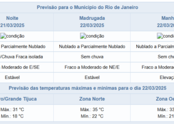 Noticias 21 de março de 2025 Fim de semana tem previsão de chuva fraca isolada à noite | Temperaturas devem variar entre 36°C e 17°C
