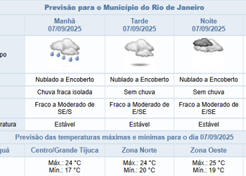 Noticias 7 de setembro de 2025 Feriado da Independência com chuva fraca no Rio | Confira a previsão do tempo para semana