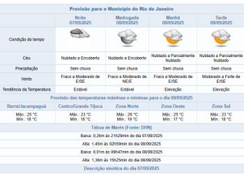 Noticias 7 de setembro de 2025 Domingo (7/9) de tempo instável e chuva fraca no município do Rio | Confira a previsão