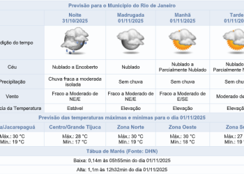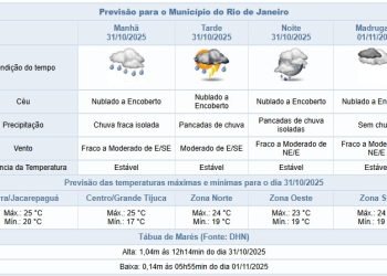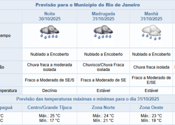 Noticias 31 de outubro de 2025 Sexta-feira (31/10) com previsão de chuva ao longo do dia na cidade do Rio de Janeiro