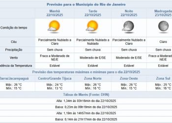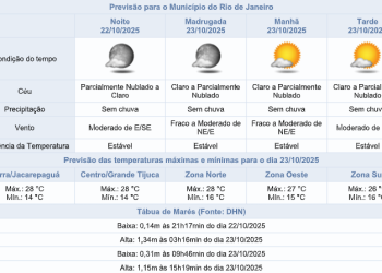 Noticias 22 de outubro de 2025 Quarta-feira (22/10) com tempo estável e sem previsão de chuva na cidade do Rio
