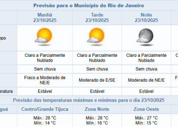 Noticias 23 de outubro de 2025 Rio segue com o tempo estável e sem previsão de chuva nesta quinta-feira (23/10) | Veja os detalhes