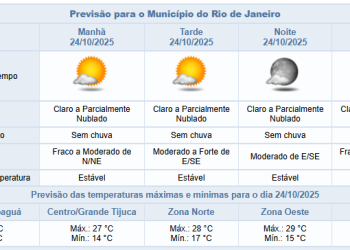 Noticias 24 de outubro de 2025 Sexta-feira (24/10) sem previsão de chuva e com temperatura máxima de 29°C | Confira os próximos dias