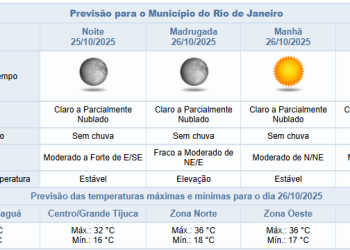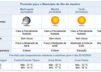 Noticias 25 de outubro de 2025 Último sábado de outubro (25/10) com céu claro e temperatura estável no Rio | Confira os próximos dias