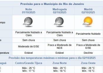 Noticias 1 de outubro de 2025 Noite de quarta-feira (1º/10) sem previsão de chuva e com ventos moderados na cidade do Rio | Confira