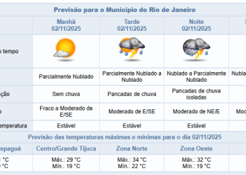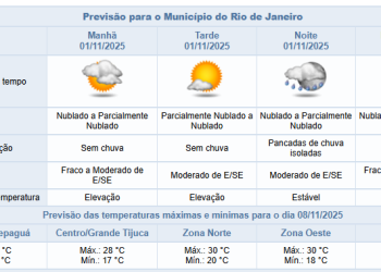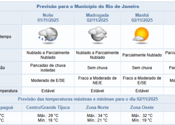 Noticias 1 de novembro de 2025 Sábado (1/11) poderá ter pancadas de chuva à noite. Temperatura máxima prevista de 30°C