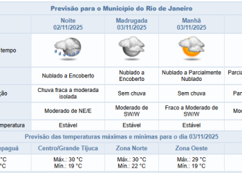 Noticias 2 de novembro de 2025 Previsão de chuva fraca a isolada para noite de domingo (02/11) | Confira próximos dias