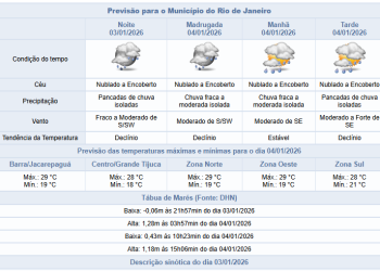 Noticias 3 de janeiro de 2026 Noite de sábado (03/01) com previsão de chuva na Cidade Maravilhosa | Confira como fica o tempo na semana
