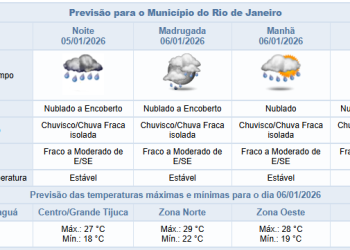 Noticias 5 de janeiro de 2026 Noite da primeira segunda-feira do ano (05/01) será de chuva fraca no Rio | Veja os próximos dias