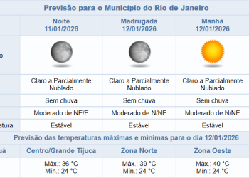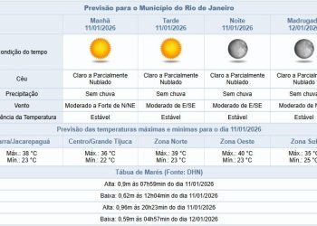 Noticias 11 de janeiro de 2026 Domingo (11/01) de sol, sem previsão de chuva e com temperaturas elevadas, na cidade do Rio