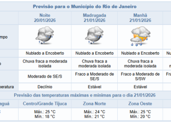 Noticias 20 de janeiro de 2026 Terça-feira (20/01) será de tempo instável e com queda de temperatura na cidade do Rio