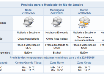 Noticias 21 de janeiro de 2026 Quarta-feira (21/1) termina com previsão de chuva fraca na cidade do Rio | Confira os próximos dias