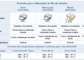 Noticias 23 de janeiro de 2026 Previsão de chuva fraca a moderada para a noite desta sexta na cidade do Rio (23/1) | Confira os próximos dias