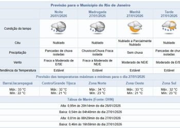 Noticias 26 de janeiro de 2026 Noite de segunda-feira (26/1) tem previsão de pancadas de chuva com raios | Tempo pode ficar instável até sexta (30/01)