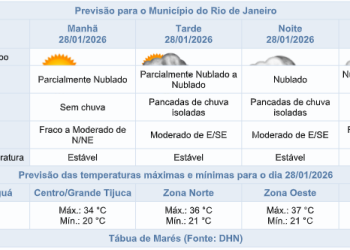 Noticias 28 de janeiro de 2026 Quarta-feira (28/01) tem previsão de chuva com raios em pontos isolados na cidade do Rio; confira