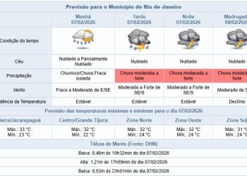 Noticias 7 de fevereiro de 2026 Sábado (07/02) com possibilidade de chuva forte, raios e vento na cidade do Rio de Janeiro