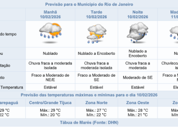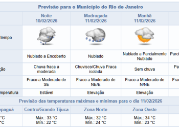 Noticias 10 de fevereiro de 2026 Noite de terça (10/2) com previsão de chuva fraca a moderada isolada no Rio | Confira também os próximos dias