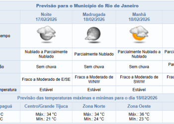 Noticias 17 de fevereiro de 2026 Previsão de chuva fraca para fim da tarde desta terça-feira (17/02) | Confira próximos dias