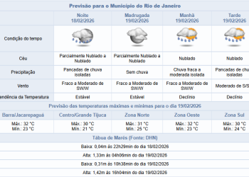 Noticias 18 de fevereiro de 2026 Noite de quarta-feira (18/2) com previsão de pancadas de chuva | Confira os próximos dias