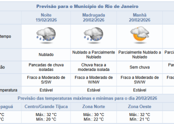 Noticias 19 de fevereiro de 2026 Quinta-feira (19/02) no Rio com previsão de pancadas idoladas de chuva na parte da noite | Confira