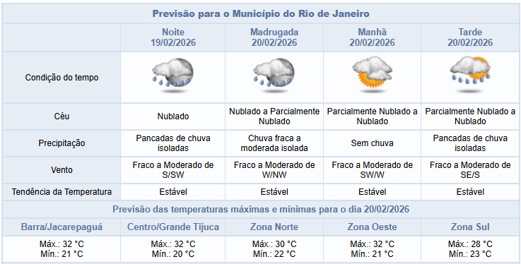 Quinta-feira (19/02) no Rio com previsão de pancadas idoladas de chuva na parte da noite | Confira