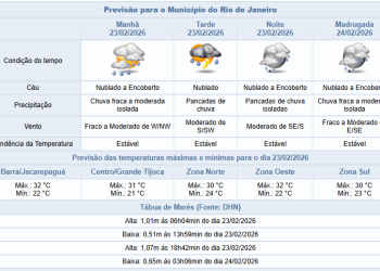 Noticias 23 de fevereiro de 2026 Manhã de segunda-feira (23/2) com possibilidade de chuva fraca a moderada na cidade do Rio