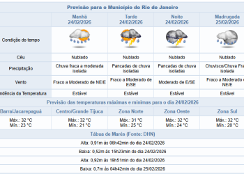 Noticias 24 de fevereiro de 2026 Terça-feira (24/2) tem possibilidade de chuva fraca a moderada na cidade do Rio de Janeiro