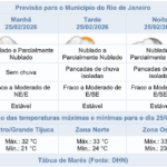 Noticias 25 de fevereiro de 2026 Quarta-feira (25/02) segue com tempo instável e previsão de chuva a partir da tarde na cidade do Rio