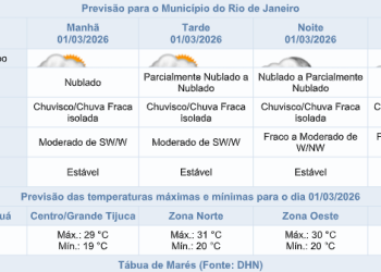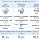 Noticias 1 de março de 2026 Domingo (01/03) tem previsão de céu nublado e chuva fraca na cidade do Rio de Janeiro