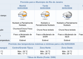 Noticias 2 de março de 2026 Segunda-feira (02/03) será de tempo instável e com possibilidade de chuva fraca capital fluminense