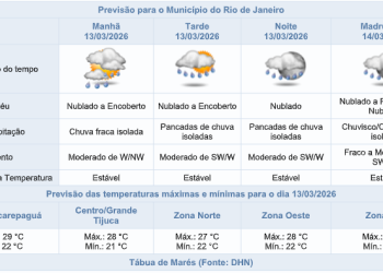 Noticias 13 de março de 2026 Sexta-feira (13/03) poderá ter chuva moderada na cidade do Rio de Janeiro a partir da tarde