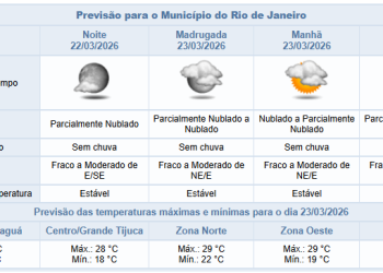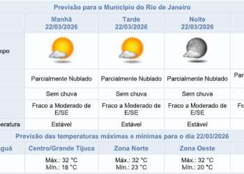 Noticias 22 de março de 2026 Domingo (22/03) será de tempo estável e sem previsão de chuva para a cidade do Rio de Janeiro