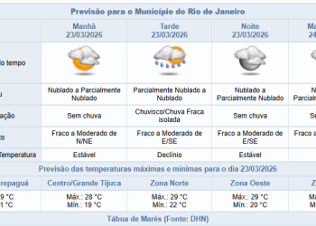 Noticias 23 de março de 2026 Segunda-feira (23/3) com possibilidade de chuva fraca no período da tarde na cidade do Rio