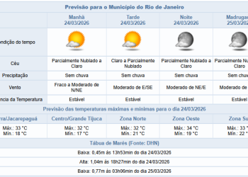 Noticias 24 de março de 2026 Terça-feira (24/3) sem previsão de chuva na cidade do Rio | Confira a previsão para os próximos dias