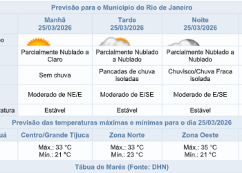 Noticias 25 de março de 2026 Quarta-feira (25/03) será de tempo instável e temperaturas elevadas na cidade do Rio de Janeiro
