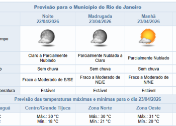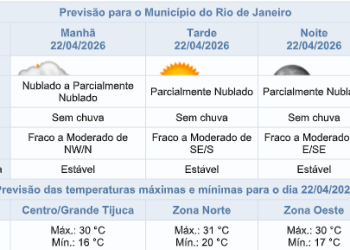 Noticias 22 de abril de 2026 Quarta-feira (22/4) será de tempo estável na capital fluminense e sem previsão de chuva