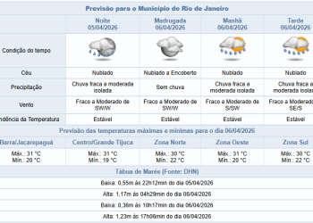 Noticias 5 de abril de 2026 Domingo de Páscoa (5/4) com possibilidade de chuva fraca a moderada a partir da tarde na cidade do Rio