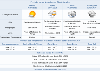 Noticias 1 de janeiro de 2026 Primeiro dia do ano (01/01) tem previsão de chuva e termômetros podem chegar a 37°C no Rio