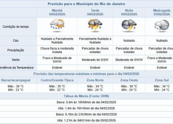 Noticias 4 de fevereiro de 2026 Quarta-feira (04/02) com possibilidade de pancadas de chuva na cidade do Rio de Janeiro